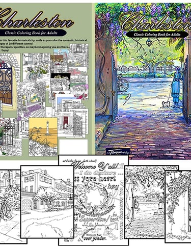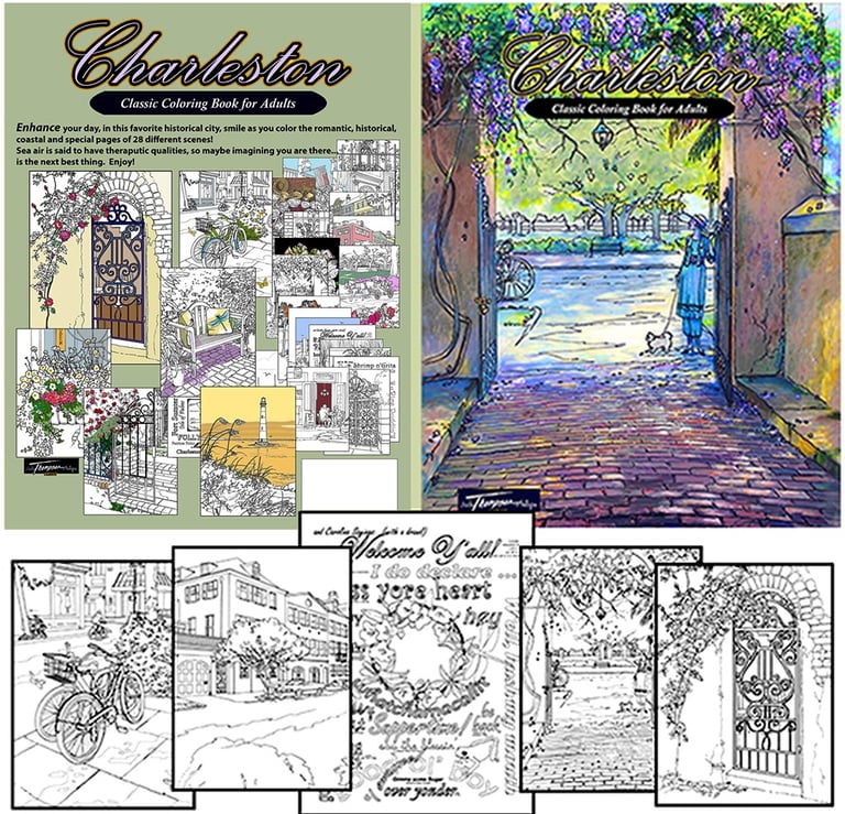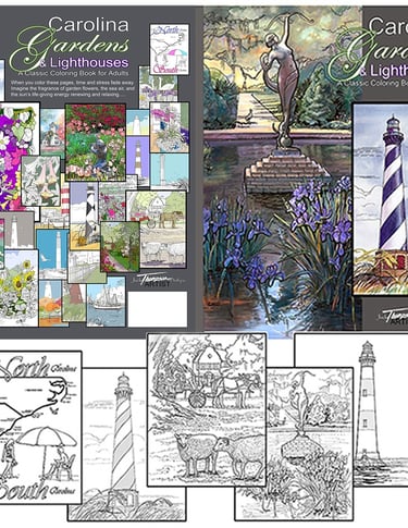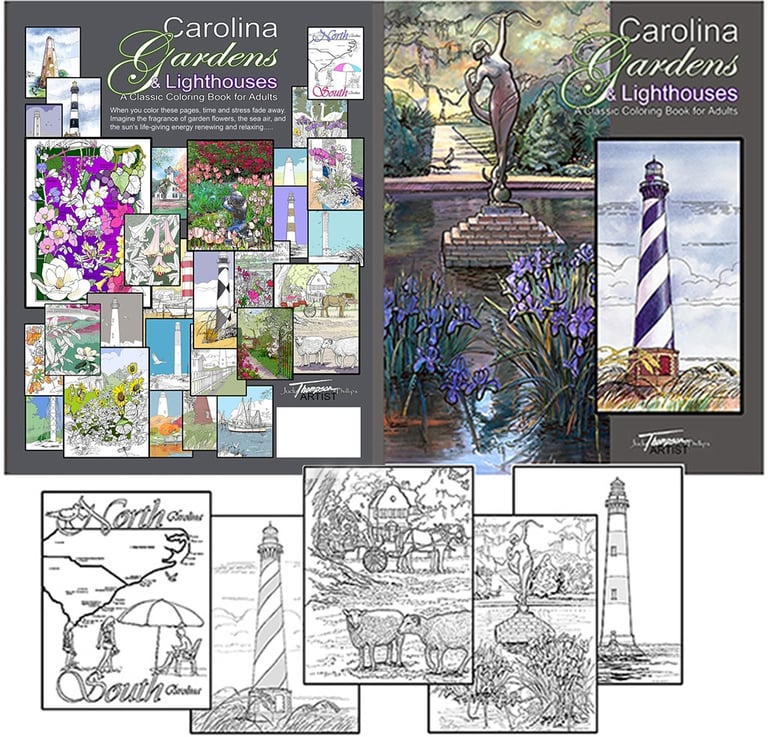 A treasure full of happy scenes that will lift your spirits. Imagine being in a Carolina garden as you color these pages; springtime air, full of intoxicating floral fragrance and exuberant, native flowers to color. Also, historic Carolina lighthouses and info pages.